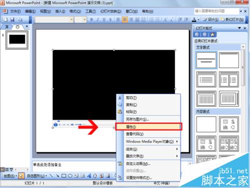 5、在播放器界面上单击右键出现下拉菜单,选择属性,调出属性窗口。