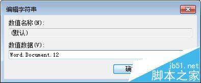 5、双击(默认)一项,将其改为 Word.Document.12。