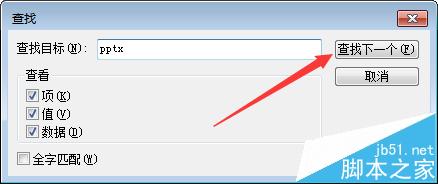 9、如果在注册表中使用CTRL + F查找时,没有找到相应的目录,请注意图中标出的“查找下一个”。CTRL + F只能查找该位置后的内容,请选择HKEY_CLASSES_ROOT目录中的第一个目录后,重新查找。