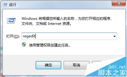 2、在弹出的运行对话框里输入【regedit】,点击确定打开注册表编辑器
