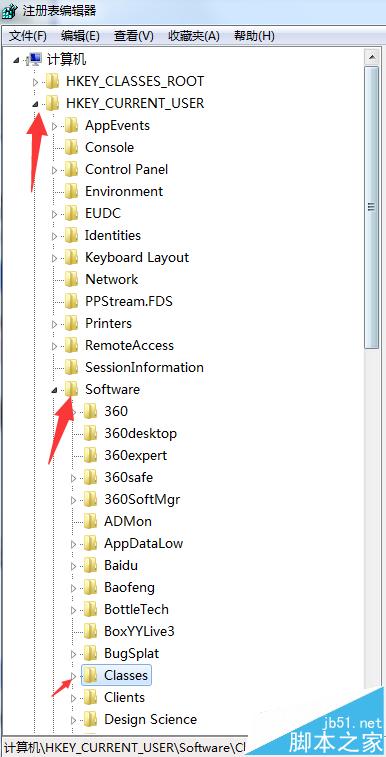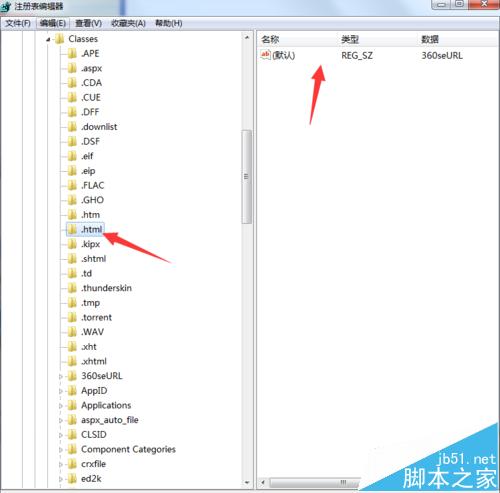 3、进入注册表编辑器进入【HKEY_CURRENT_USER\Software\Classes\.html】项下