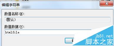 5、右键点击默认值,选择更改数据,将其值更改为【htmlfile】,点击确定,重启office即可。