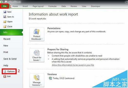 1、打开Excel2010,单击“文件”选项卡,在弹出的菜单中选择“选项”。