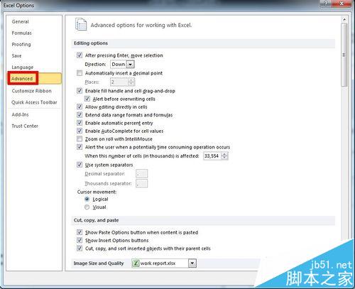 2、在弹出的Excel选项对话框中单击“高级”。