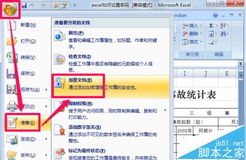 1、如果想让别人打开Excel表格时就需要密码,那么点击左上角的图标,然后选择准备-加密文档。