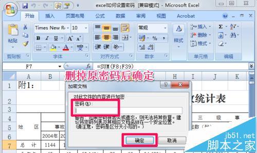 6、如果想要取消或者更换密码,那么输入密码打开文件后重复前两步,取消密码就是把原有密码删掉后确定,改密码的话直接改就可以了。