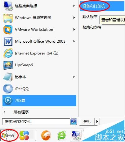 1、单击“开始”、“设备和打印机”;打开【设备和打印机】窗口;
