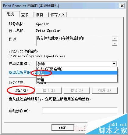 3、若经常要用到打印,建议双击相应服务,将启动类型设置为“自动”,并启动服务;