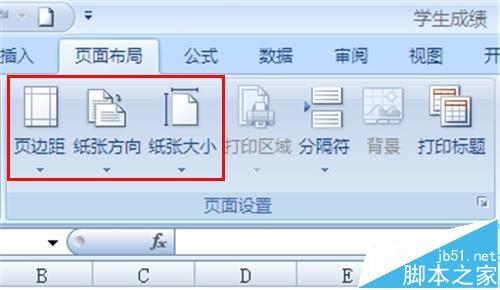 3、单击“页面布局”面板,在“页面设置”组中,可设置页边距,纸张方向,纸张大小