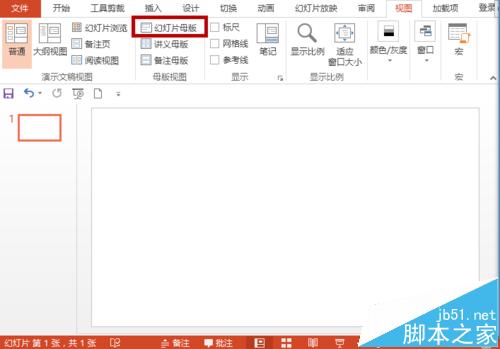 2、找到幻灯片母版选项,单击“幻灯片母版”。