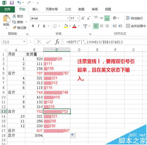 表示重复显示各月发货量占总发货量个竖线。效果如图所示。