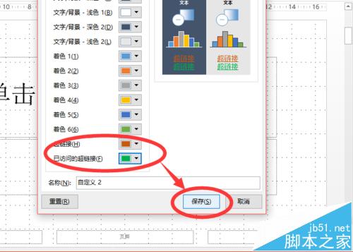 5、设置之后,即可点击【保存】。保存之后,现有的超链接变成设定的颜色。如图所示。