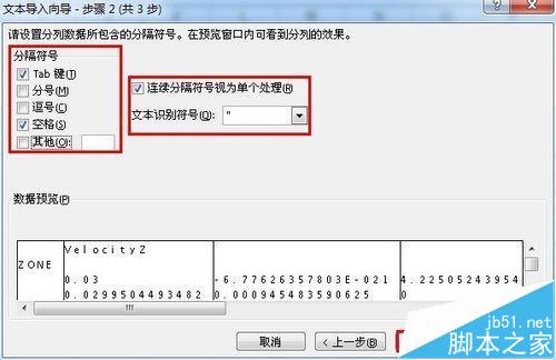 2、一般选择空格,这需要看你自己处理的文件中文本之间的间隔符号,双引号之间的数据或文本可以作为一个数据输出。