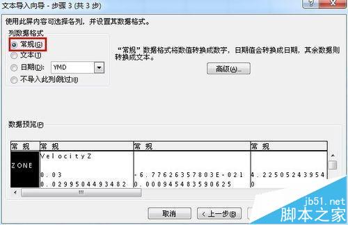 3、一般选择常规,下面可以预览效果,最后点击完成,选择当前或新建数据表,就可以了