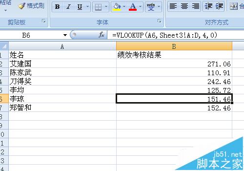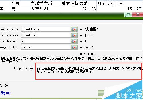 9、最后一个参数就是确定数据的匹配是精确匹配还是模糊匹配,这里是要找到指定人的绩效工资,一对一的,所以要用精确!