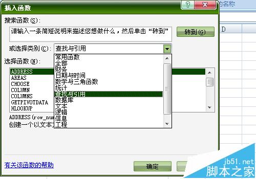 4、打开插入函数,会跳出来一个插入函数的使用向导,这时候需要点击如图所示的向导对话框的下拉的三角形的按钮,这里会显示要使用的函数的类型.