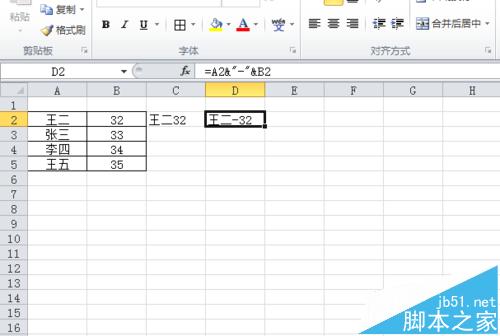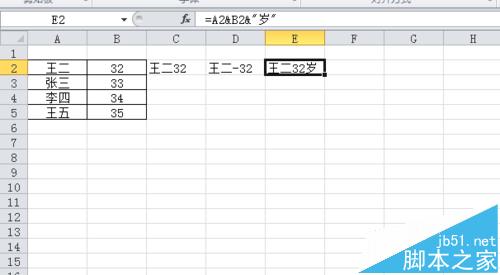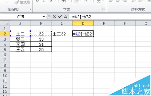 1、最简单的,如图,连接AB两行内容。直接输入= & 。