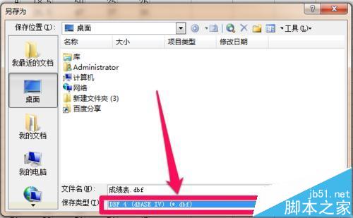 3、保存类型选择DBF (这里有DBF 2、3、4 选 DBF4就行)