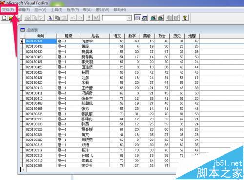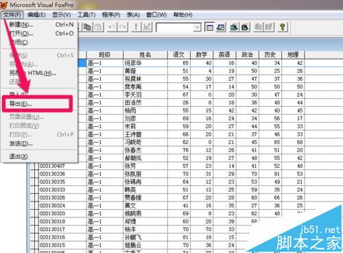 1、Visual FoxPro 表文件dbf 转 电子表格文件xls。用FoxPro打开一张表,单击“文件“菜单