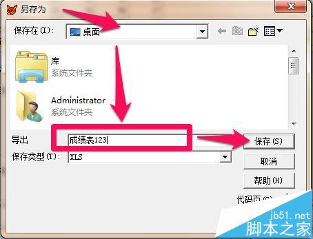 4、我选择保存在桌面,文件名命名为“成绩表123”,请自行命名。单击 “保存”。