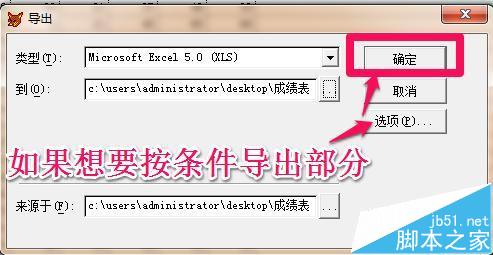 5、可以按条件导出部分数据,不选择就导出全部。全部只能是16383条以内,如果数据超过16383条,就按条件多次导出在合并吧,单击“确定”