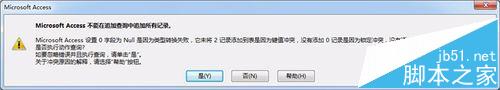 虽然本文的制作环境是Access2016,但操作与2010版甚至2003版是一致的。如图,错误提示,是有2条记录由于键值冲突无法追加。这个追加查询是追加4条记录的,如果按“是”就只追加2条,如果按“否”就不执行追加查询(追加0条)。