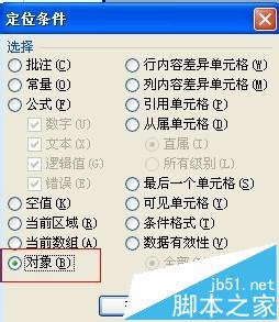 4、点击定位对话框下的“定位条件”选择“对象”并确定