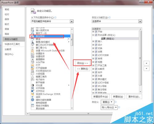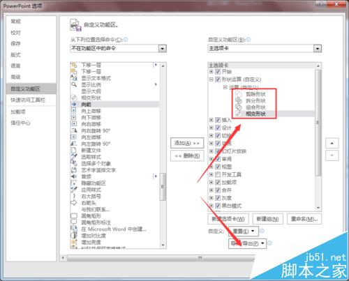 6、然后在下面的选择框当中,我们需要分别找到这么几个工具,他们分别就是剪除形状,拆分形状,组合形状,相交形状。然后我们在分别点击我们的添加,那么我们就可以把这4个工具添加了。