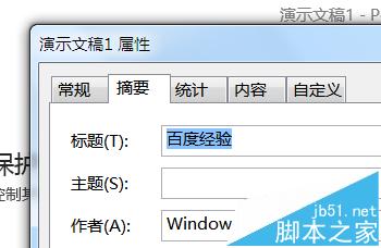 5、在“属性”窗口中选择“摘要”选项卡。