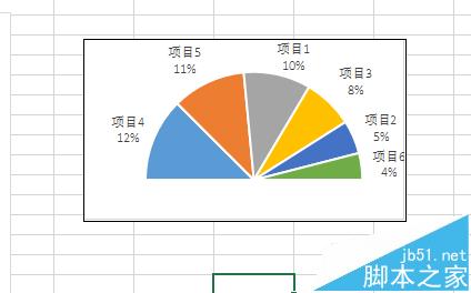 饼图是excel的基本图形类型之一,我们通常使用饼图来表现各个项目的占比情况,有时候我们会看到一种半圆形的饼图,但是excel内置中并没有这种类型,那么我们如何制作呢?