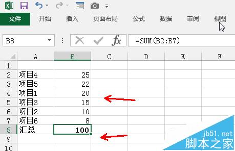 1、打开excel2013,其他版本操作其实都差不多,输入各个项目类别的数据,如图所示,并进行依次汇总统计,结果放在列表底端,如图所示