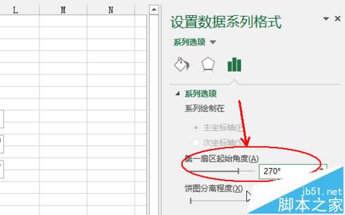 4、在excel右侧的找到第一扇区起始位置,输入270度,也就是从-90度开始,如图所示,原来左侧的蓝色图形转移到底端位置