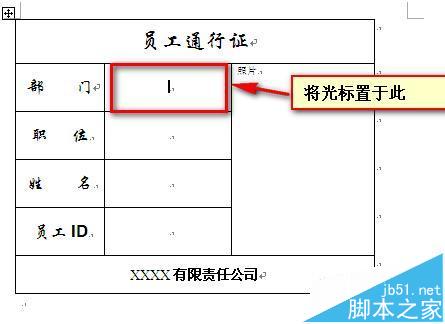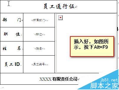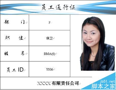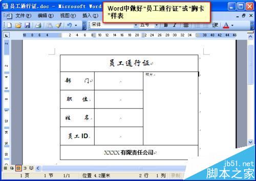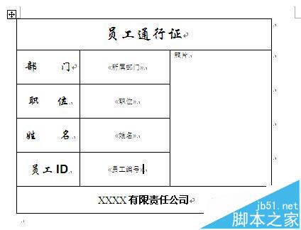 3、WORD中做好员工通行证或胸卡样式表,如图所示