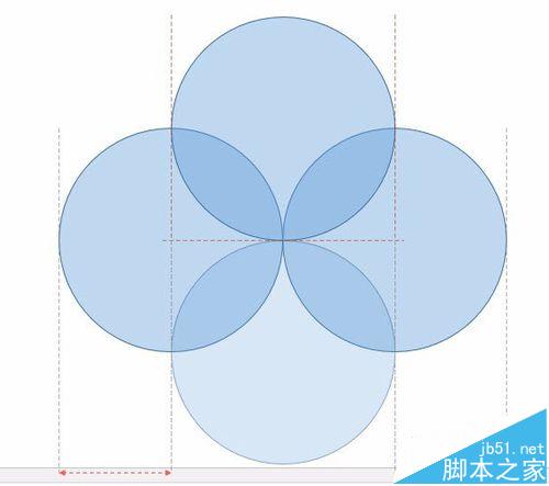 2、继续选中其中一个圆,在垂直方向上进行复制。一样可以利用按住Ctrl键拖拽鼠标的方法。注意四个圆交叉的十字中心位置(如下图所示)