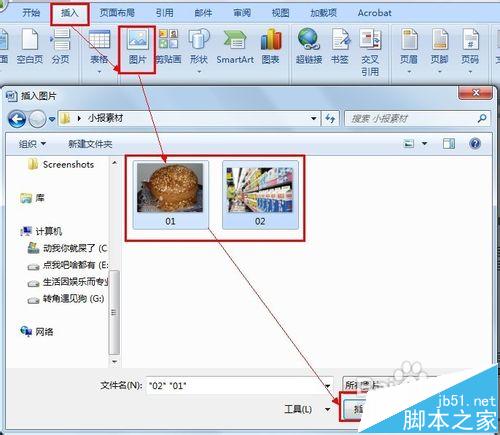 10、依次单击“插入,图片”,然后选择准备好的素材图片,单击“插入”: