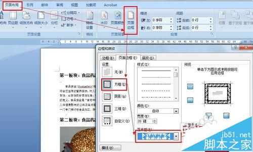 13、依次单击“页面布局,页面边框”,然后选择“方框”,选择合适的艺术型后,单击“确定”: