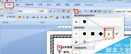 18、在文章的大标题前增加项目符号。依次单击“开始,项目符号”,然后选择喜欢的单击: