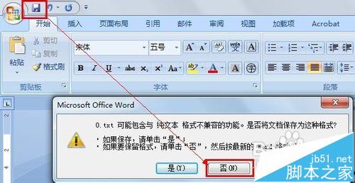 19、单击“保存”。因为文档原始格式是txt,因此会有如下提示。单击“否”,弹出另存为对话框: