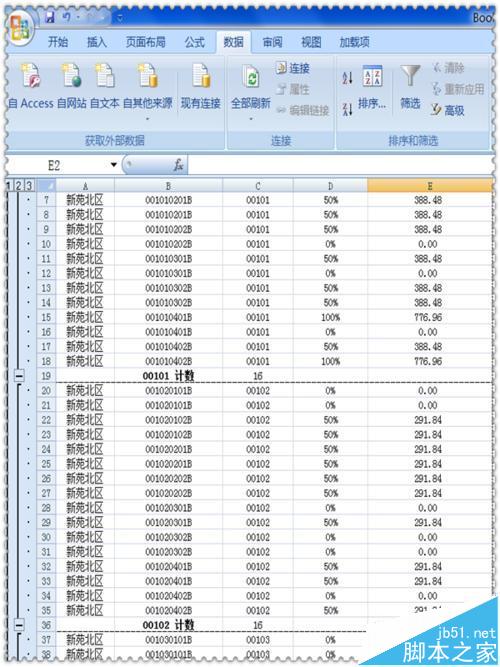 4、在“数据”菜单内,找到excel“分类汇总”功能,为同一个单元计数并在下方的“每组数据分页”选项的方框前打上对勾,这样,不同单元的住户自动地分了页。