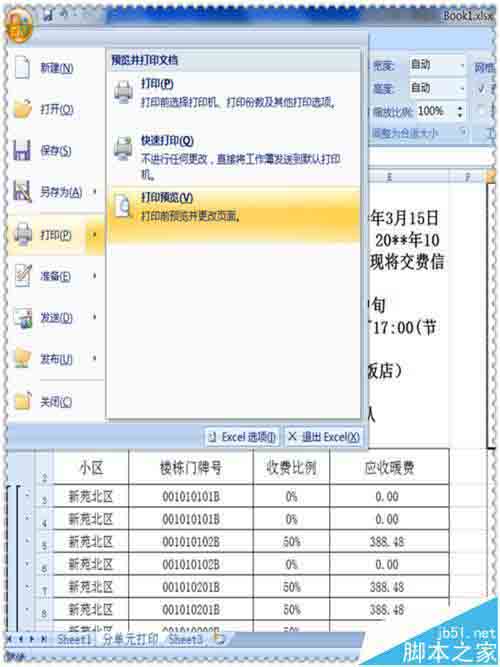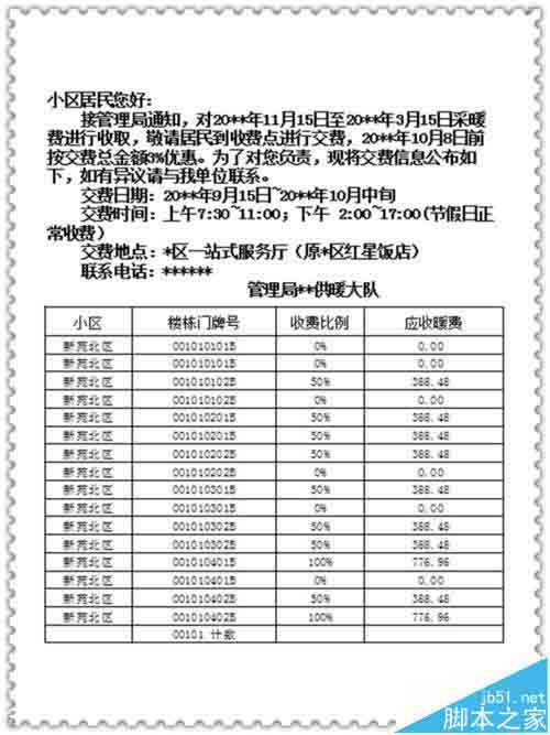 8、可以进行打印预览了。至此,这个楼栋居民缴费通知单制作完成,并能进行打印了。把打印好的通知单分半裁开。