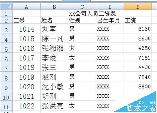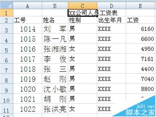 1、用excel2007打开“XX公司人员工资表”工作表