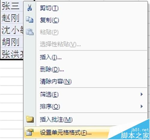 3、单击鼠标右键,弹出右键菜单,点击“设置单元格格式”