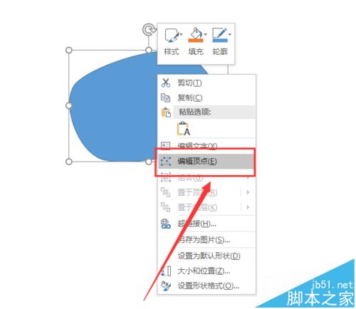 3、然后我们点击我们刚才画出来的打开的图形,然后点击右键,我们可以看到有一个编辑顶点选项,这里我们就点击编辑顶点经行修改我们的图形,如果我们刚才画的比较不错就不用经行修改了。