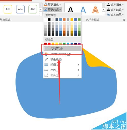 10、然后我们就是需要把我们整个图形的轮廓给去除,这样图形看起来就更像一个整体,也比较圆润。这里选择着呢刚刚图形,然后选择图形轮廓,然后选择无轮廓就可以了。