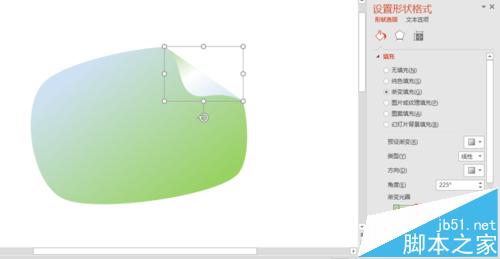 11、然后就是对颜色的修改了,这里特别是对小图形来说,修改成为一个比较美观的翻页,这里我们就需要把我们的卷页经行亮度的调节,这里我们可以使用渐变色经行设置,在颜色方面,我们在中间设置成为白色,经行调整,就可以看到卷页的效果就非常好看了。