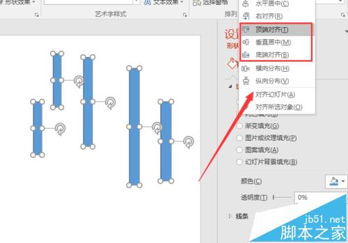 5、如果我们是竖直方向的图形对齐,那么我们还是点击格式进入对齐,然后我们需要选择的就是顶端对齐、垂直居中、底端对齐,也是根据我们图形的需要来选择。对齐的方式和水平对齐是一样的。