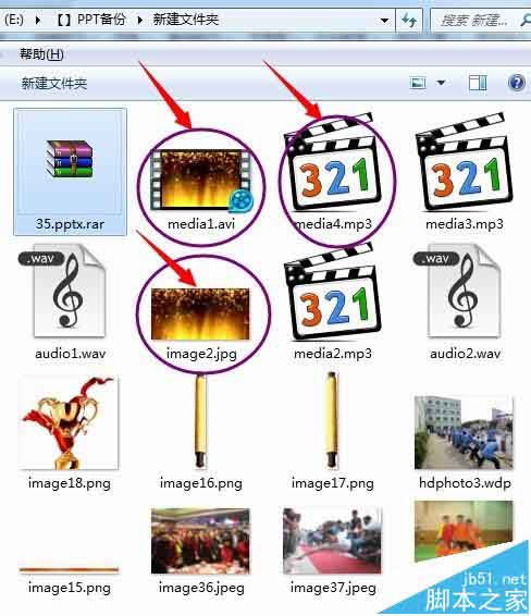 4、进入 【media】目录后,就能看到PPTX文件中内嵌的视频、音频、图片素材了。