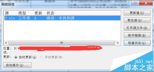 4、点击“编辑链接”在弹出的“编辑链接”对话框中的“状态”一列会显示所有链接的错误原因,比如“错误:未找到源”或“未知”。而下面的“位置:”就是你选择的链接的引用位置了,很容易可以识别是否真有问题了