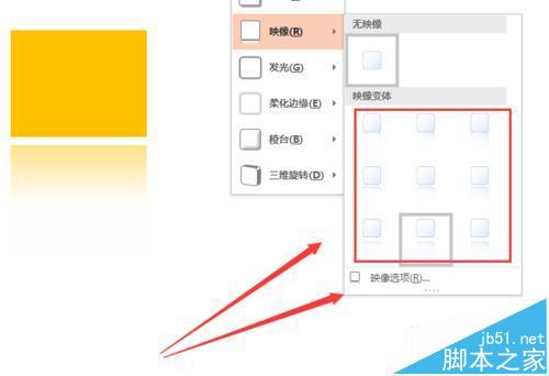 7、接下来,我们说一下映像效果的设置,进入方式和上面的阴影是一样的,不过我们选择的就是映像,其实我们所说的映像效果也就是倒影的效果,这里我们也是有很多默认的效果,也是又需要的就可以之间在这里选择。
