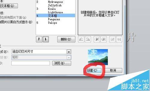 8、设置完成之后点击“创建”按钮,批量的图片就会以幻灯片相册的形式展示出来,并自动在第一页添加一个标题页,如果不需要这个标题页,直接删除幻灯片就可以了。